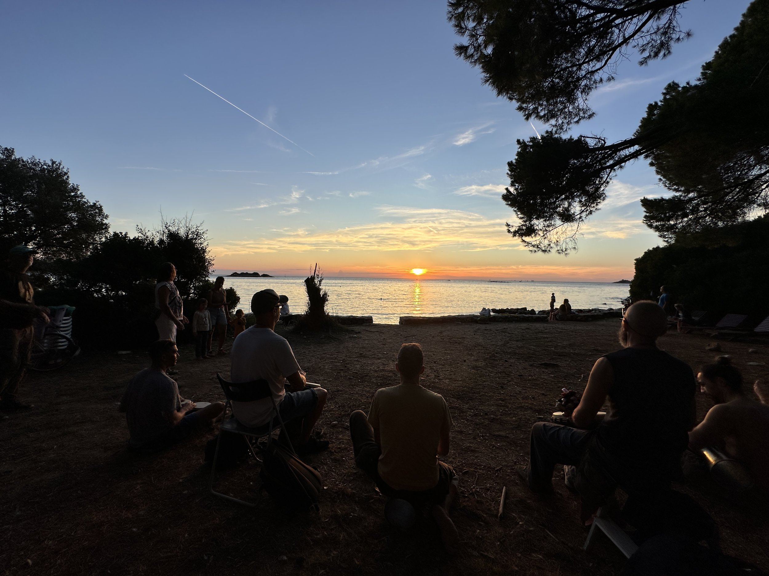 Ceremonija zalaska sunca uz more odnosno na Rovinjskoj plaži koja bi se trebala zvati Sunset Beach jer se sa te plaže mogu promatrati zalasci Sunca kroz cijelu godinu, a dva bi taj ciklus bio jedinstven priroda se pobrinula da postavi dva otoka točno na poziciju dva solsticija. Ova je plaža prirodni kalendar.